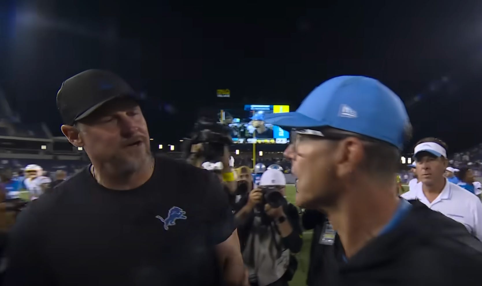 On the other sideline, we saw that Jim Harbaugh continues to be the most socially awkward coach in the game. When he jogged out to midfield after for the traditional post-game coach’s handshake, he was all grinny and jovial and ready to talk for three hours about how awesome blocking schemes are. Dan Campbell, unsurprisingly, was not. He cut Harbaugh off with a stern but friendly “good luck” and walked away. Harbaugh’s brain went, “BEEP BOOP, DEACTIVATE GOOFBALL MODE,” his expression blankened, and he trekked off to the locker room, completely unperturbed.